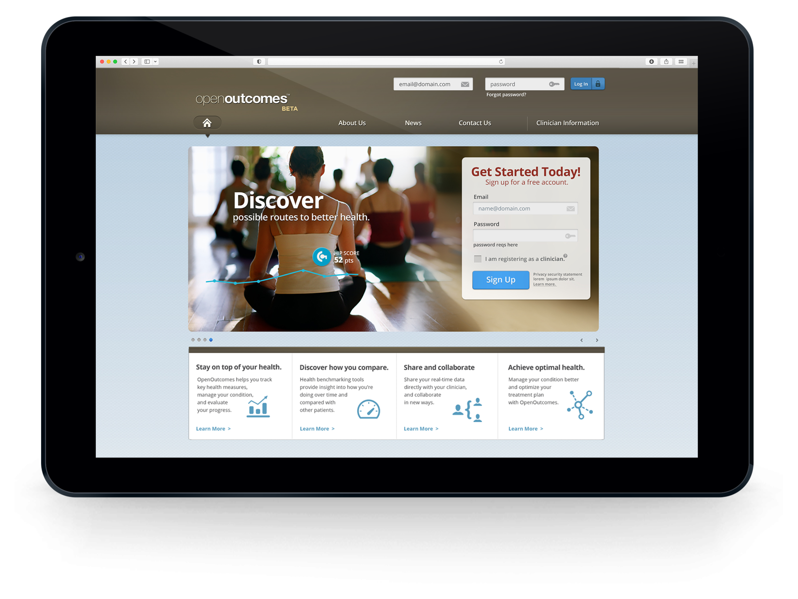 Open Outcomes Health & Wellness Application Market Healthcare Tags Creative Direction / Art Direction / Logo Design / Web Design / UI/UX For Dynamic Clinical Systems